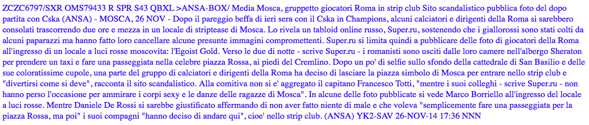 giùlemanidamarra ha scritto:su trs parlano di un articolo russo con foto dei calciatori della Roma e del dopo partita...che articolo?